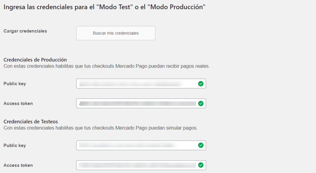 • Ya dentro de Mecado Pago generas y copias esos datos y los añades a tus configuraciones del plugin.