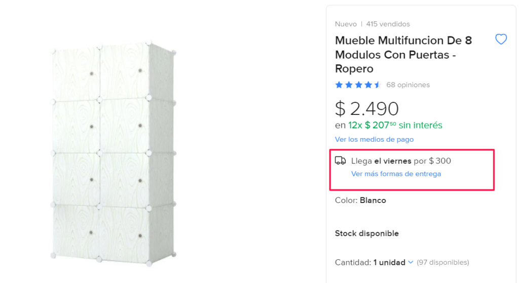Se ve claramente la diferencia donde se añade dos factores relevantes para la conversión: Plazo y Costo de Envío